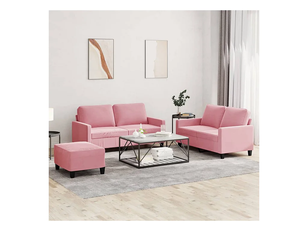 Set di divani 3 pezzi con cuscini, velluto rosa