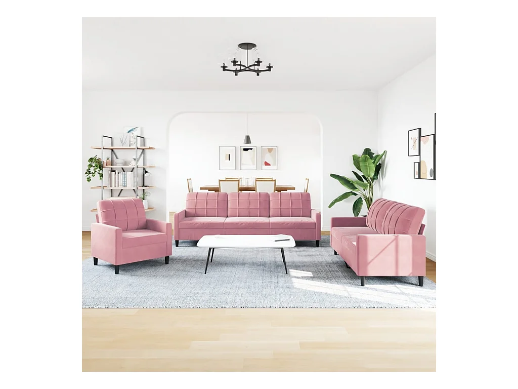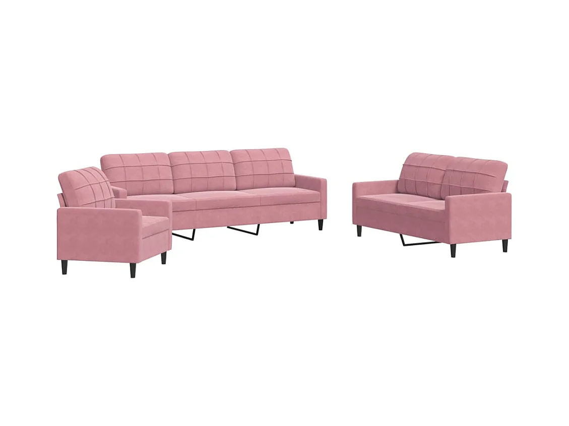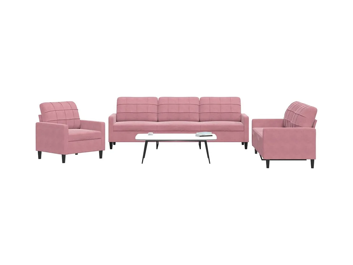 Set di divani 3 pezzi con cuscini, velluto rosa