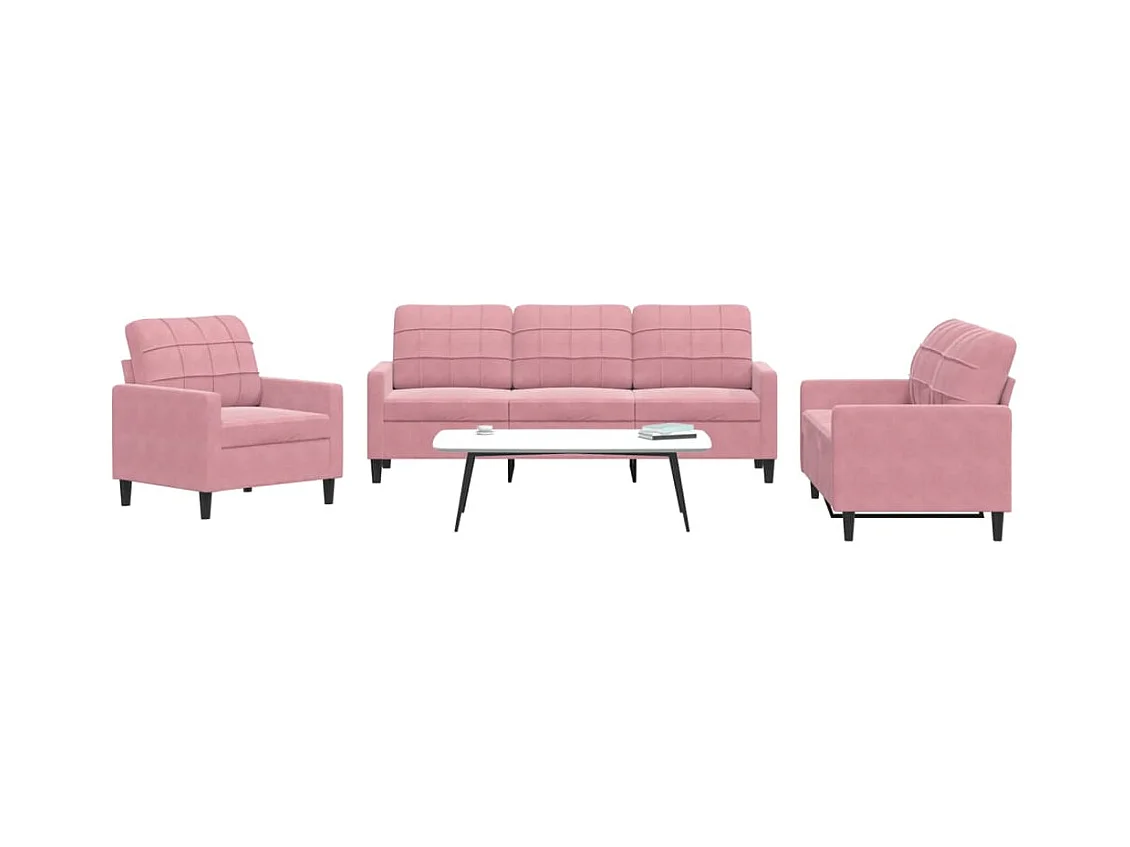 Set di divani 3 pezzi con cuscini, velluto rosa