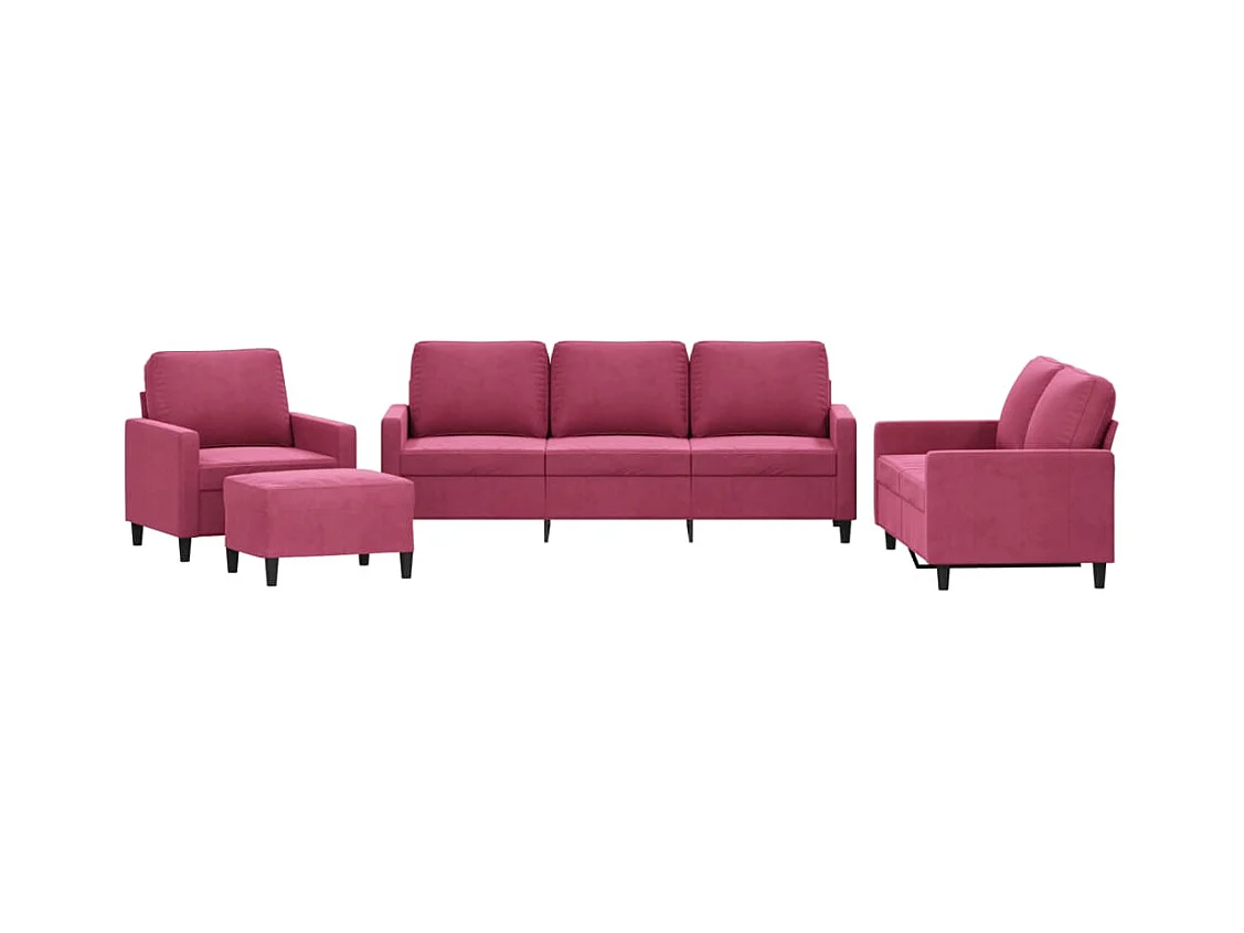Set di divani 4 pezzi con cuscini in velluto rosso bordeaux