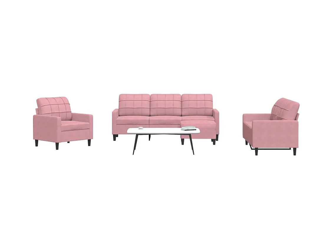 Set di divani 4 pezzi con cuscini, velluto rosa
