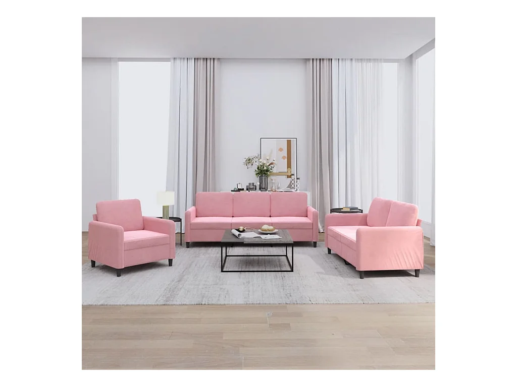 Set di divani in velluto rosa da 3 pezzi