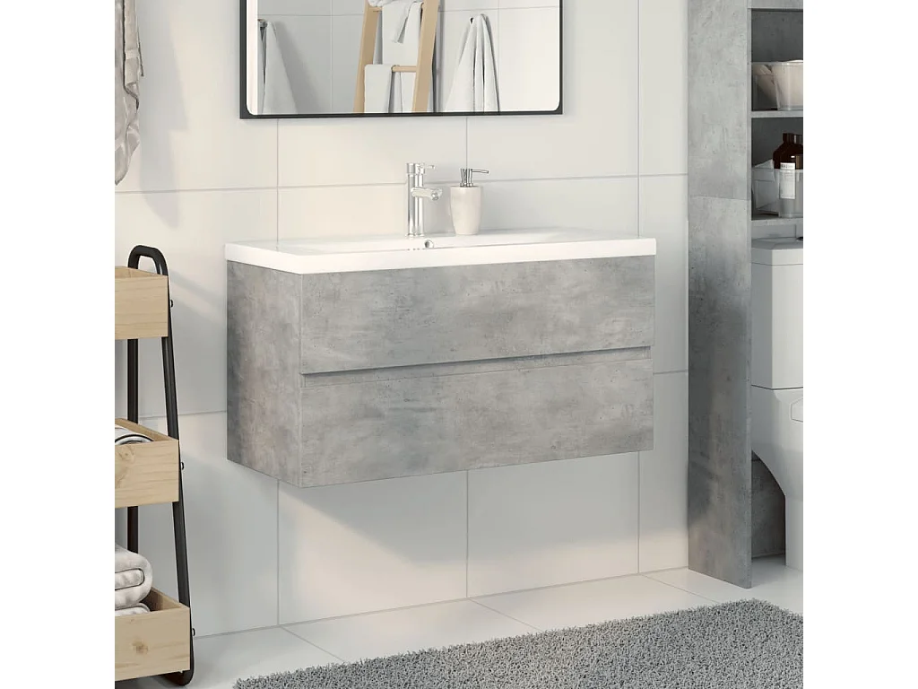 Mobile lavabo da bagno con vasca integrata in cemento grigio
