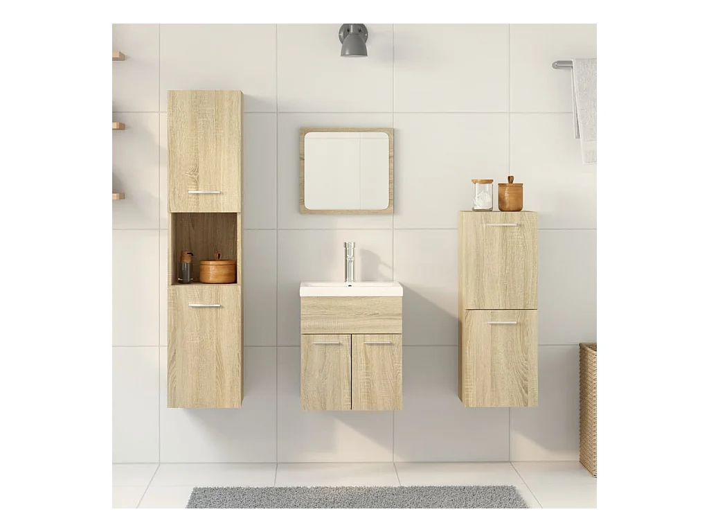 Set di mobili da bagno 4 pezzi in rovere Sonoma