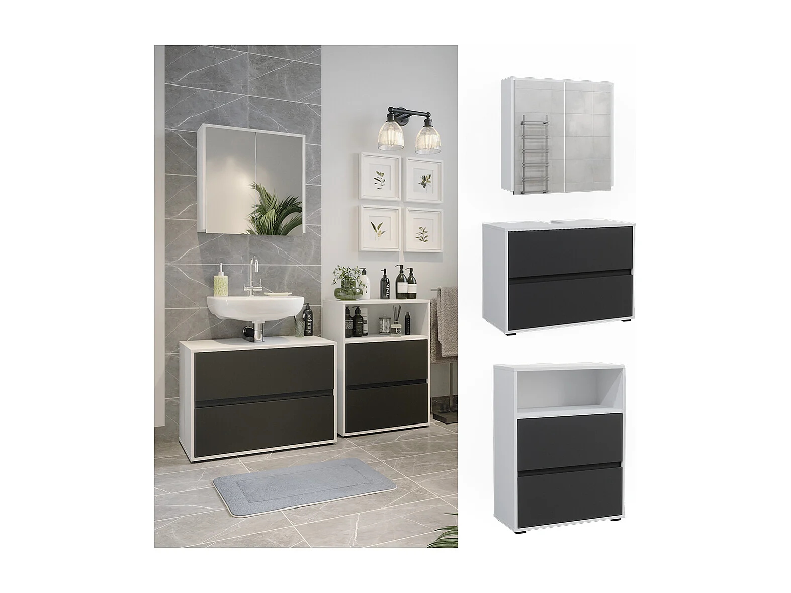 Set di mobili da bagno bianco/antracite 80x40x58 maltin