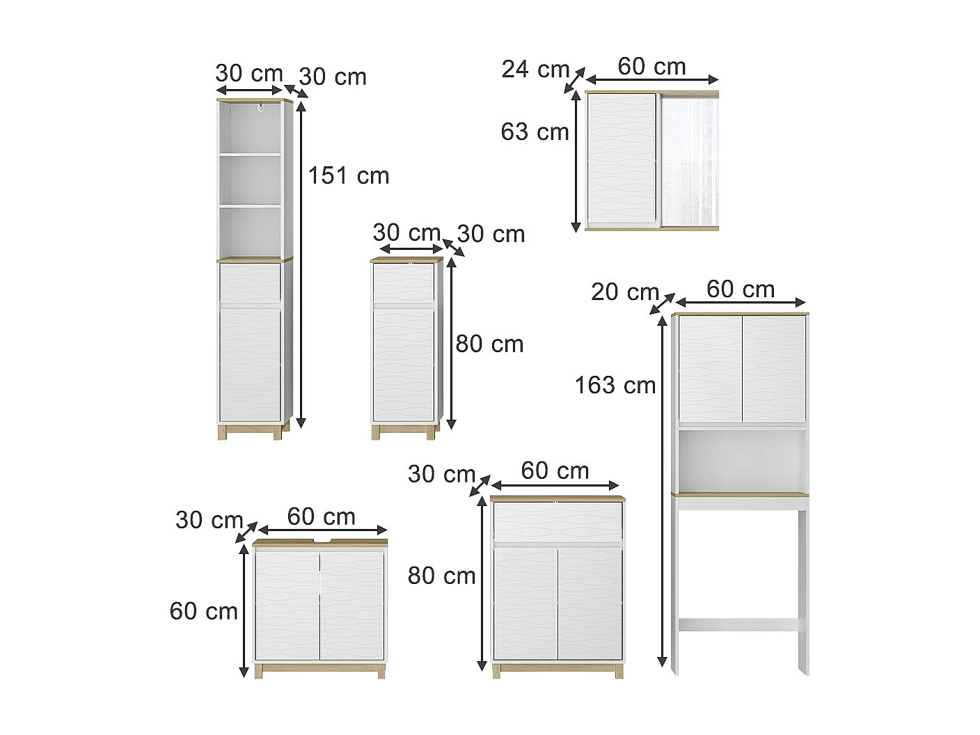 Set di mobili da bagno bianco/quercia 60x30x60 livia