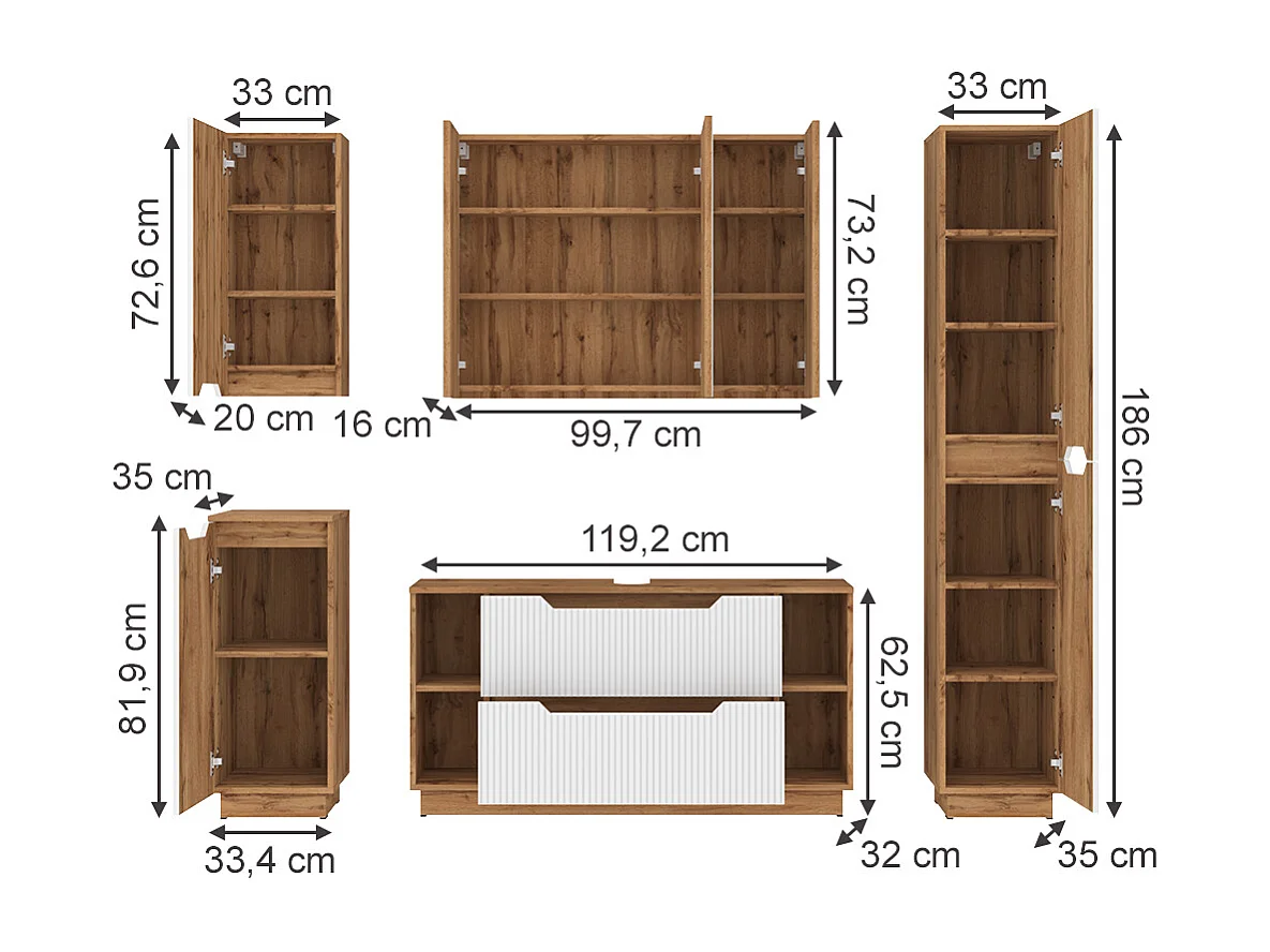 Set di mobili da bagno rovere/bianco a strisce 119.2x35x62.5 lotta