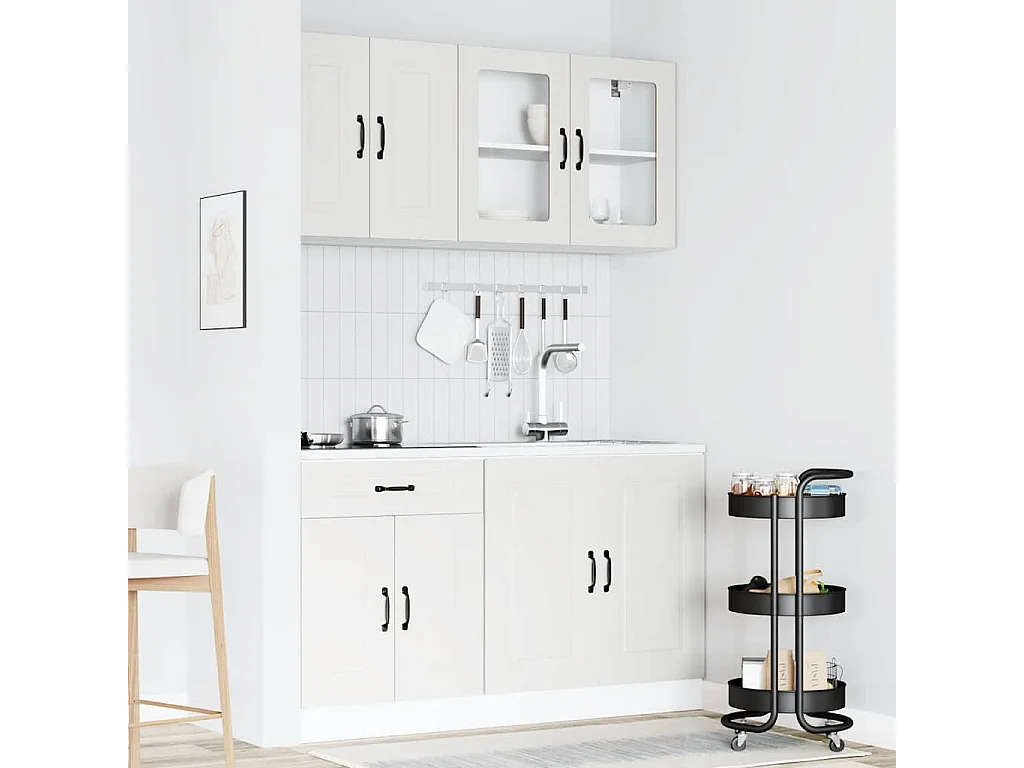 Set di mobili da cucina da 4 pezzi in legno ingegnerizzato bianco