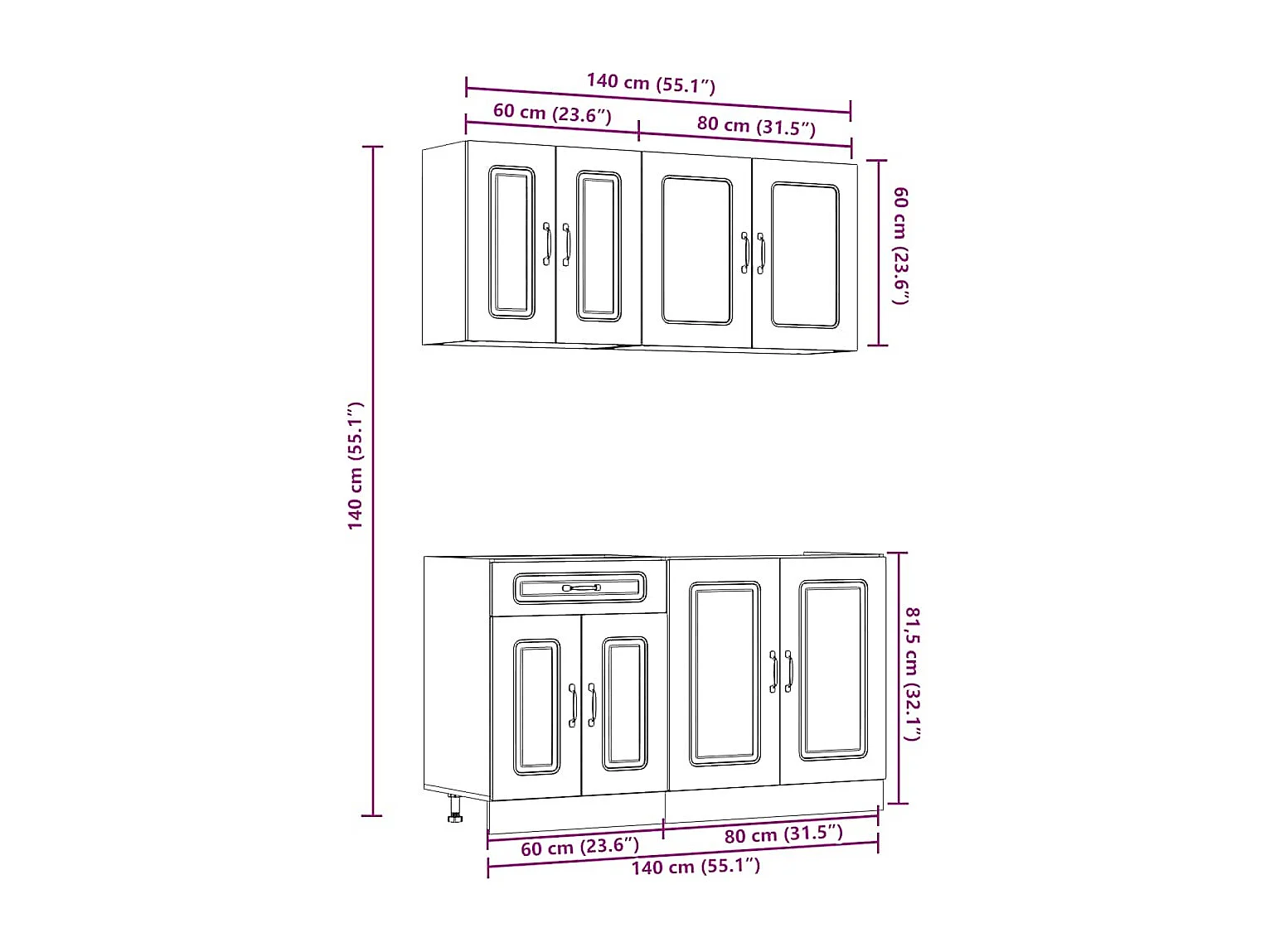 Set di mobili da cucina in legno ingegnerizzato da 4 pezzi