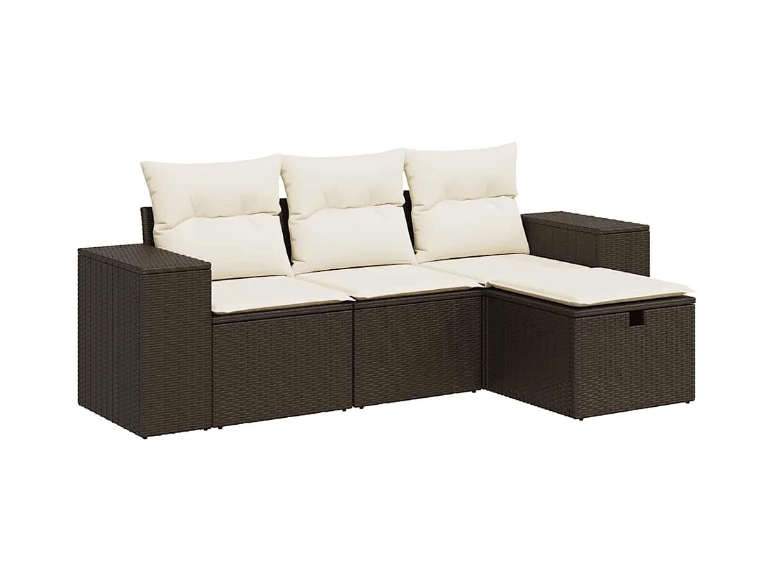 Set di mobili da giardino 4 pezzi con cuscini marroni in resina intrecciata