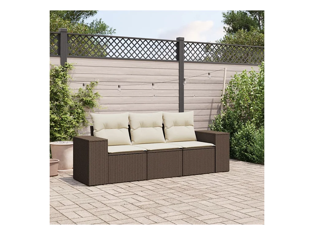 Set di mobili da giardino con cuscini 3 pezzi in resina intrecciata marrone