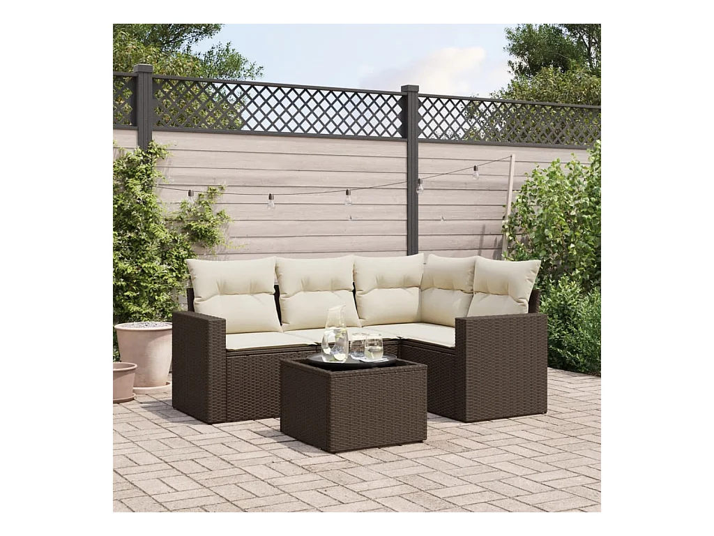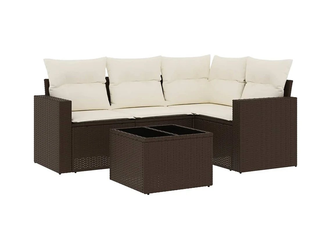 Set di mobili da giardino con cuscini 5 pezzi in resina intrecciata marrone