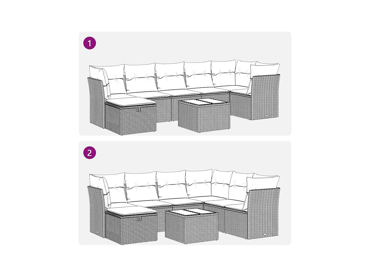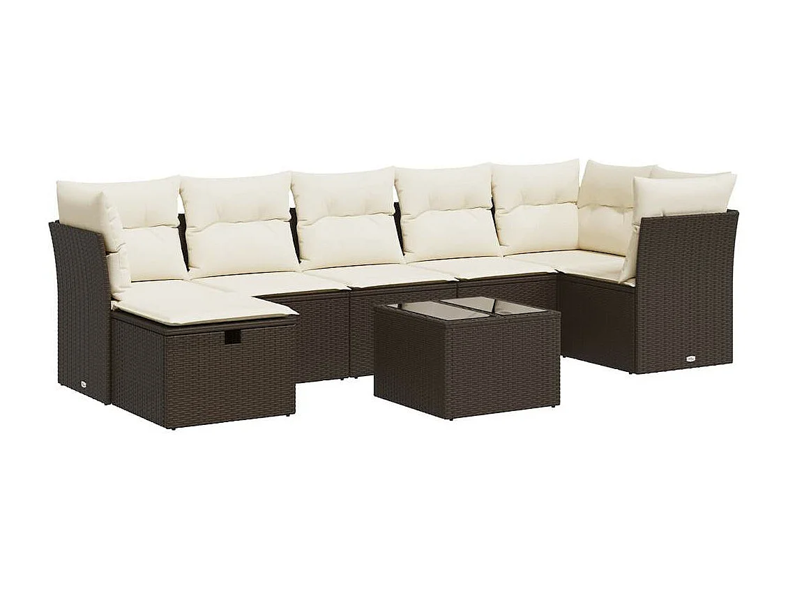 Set di mobili da giardino da 8 pezzi con cuscini marroni in resina intrecciata