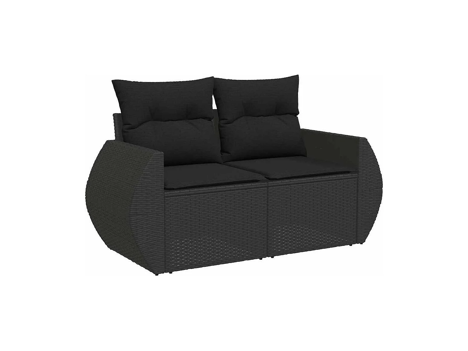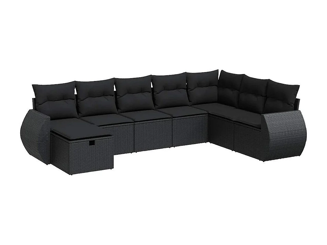 Set di mobili da giardino da 8 pezzi con cuscini neri in resina intrecciata