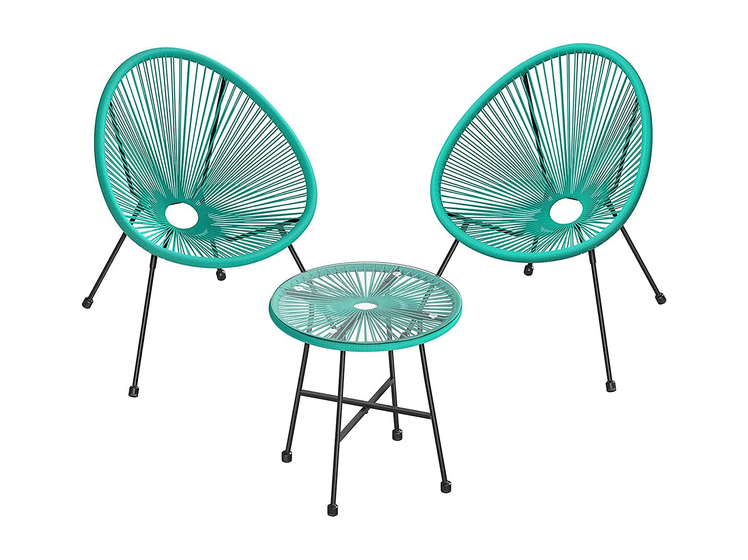 Tavolino e 2 sedie da esterno pieghevoli, Set mobili da giardino 3 pezzi con telaio robusto in metallo
