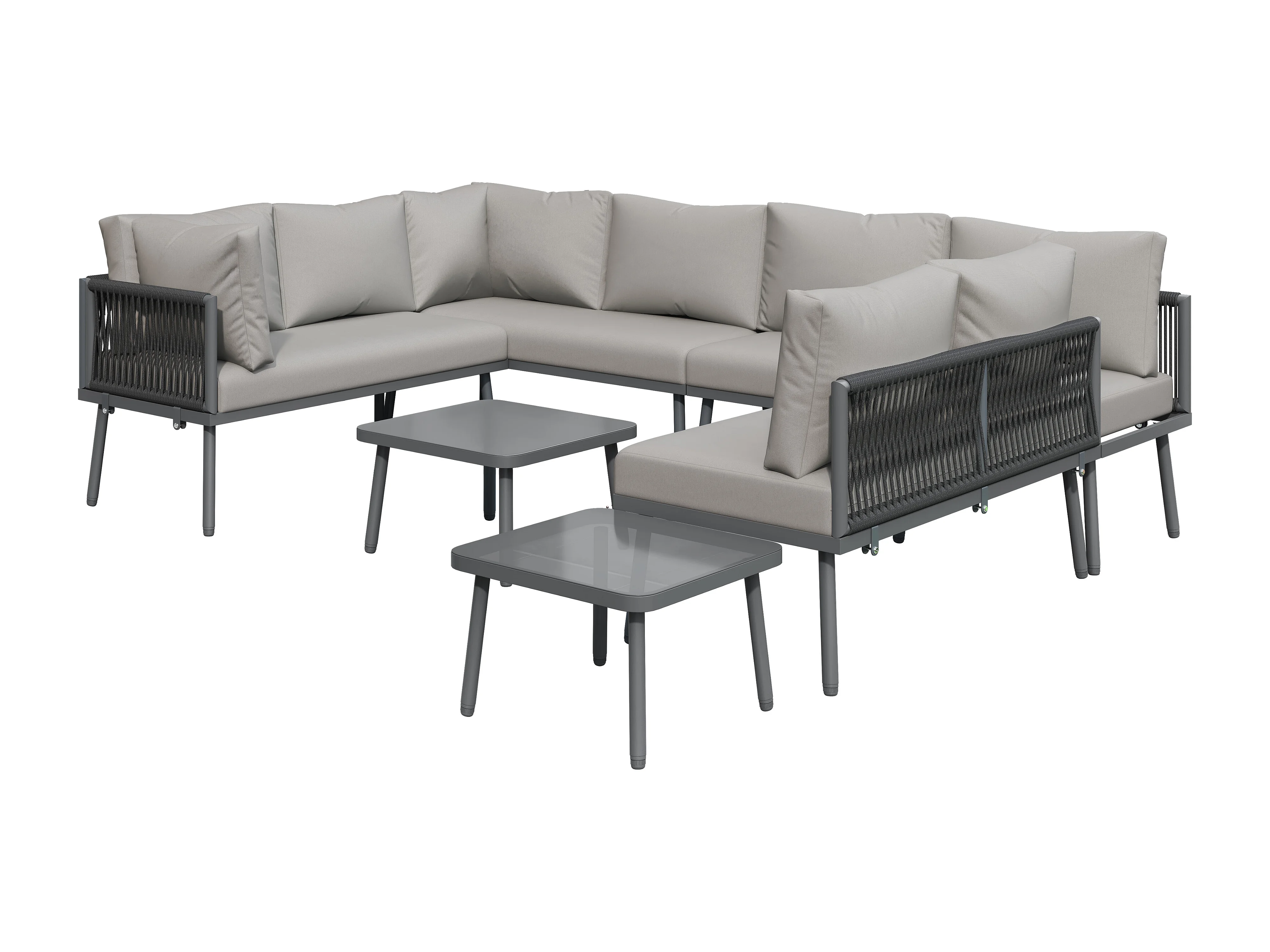 Set di mobili da giardino per 8 persone - include 2 tavoli e 4 poltrone - cuscini inclusi - grigio