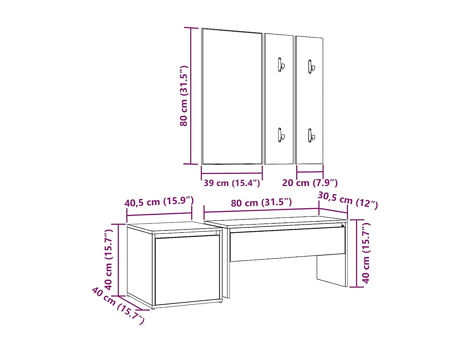 Set di mobili da ingresso in legno vecchio, legno ingegnerizzato