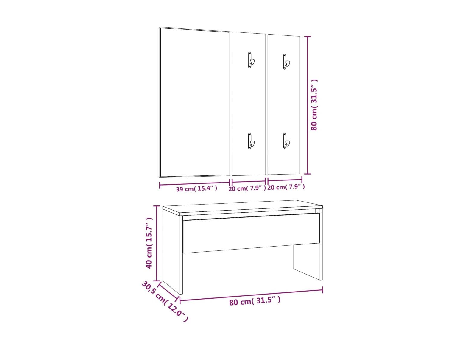 Set di mobili per ingresso in legno ingegnerizzato Sonoma Oak