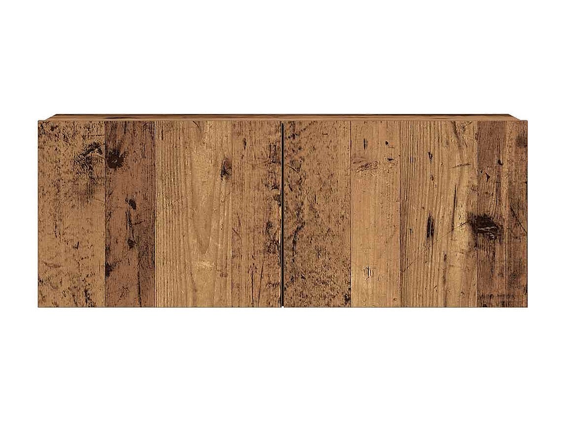 Set di mobili porta TV da parete in 2 pezzi, rovere lavorato a mano