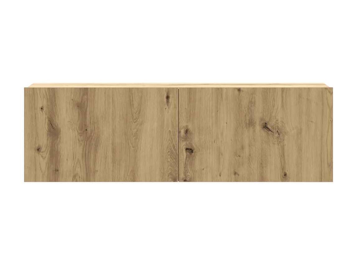 Set di mobili porta TV da parete in 2 pezzi, rovere lavorato a mano