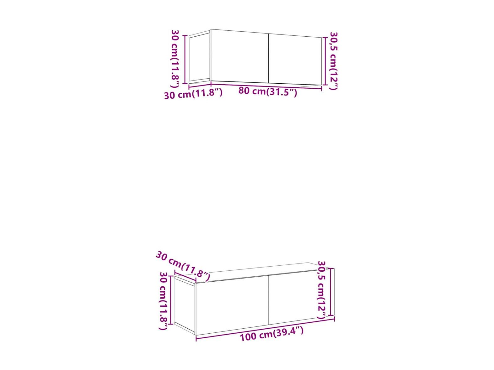 Mobili porta TV da parete 2 pezzi, legno vecchio, 100x30x30 cm