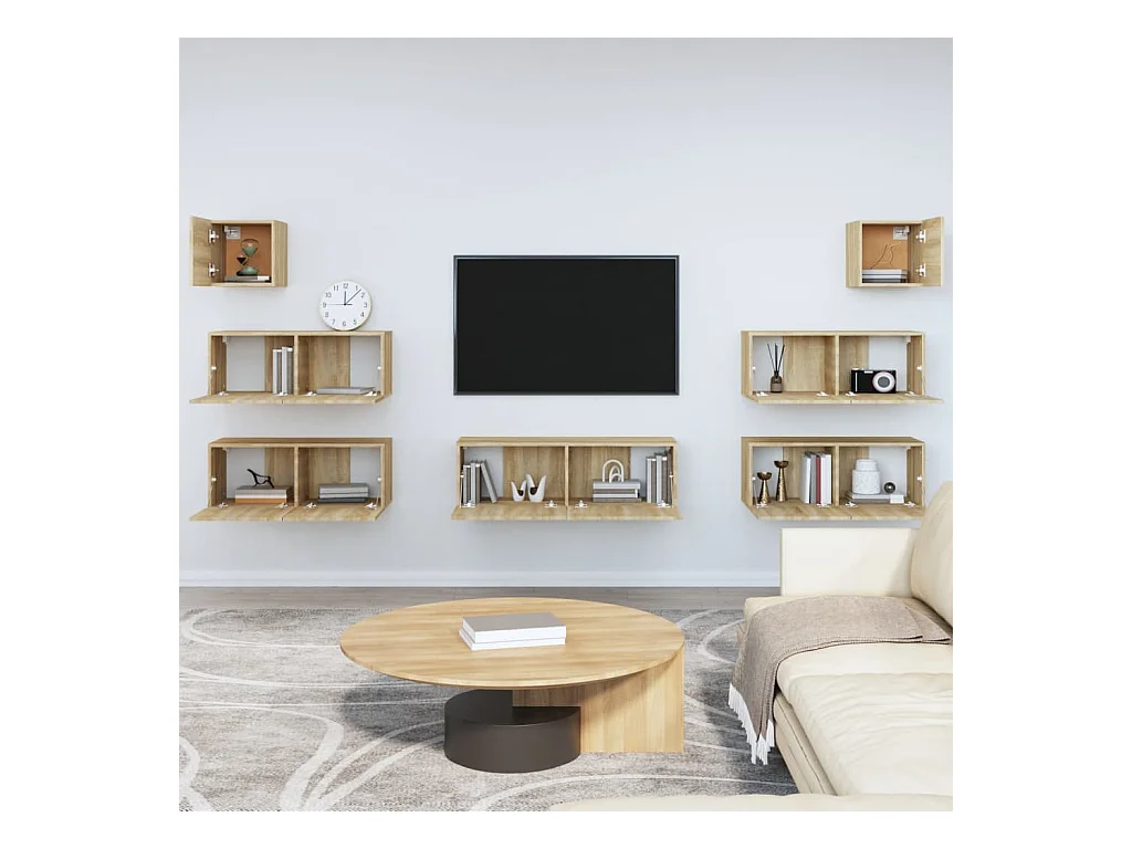 Set di mobili TV da 7 pezzi in legno ingegnerizzato Sonoma Oak