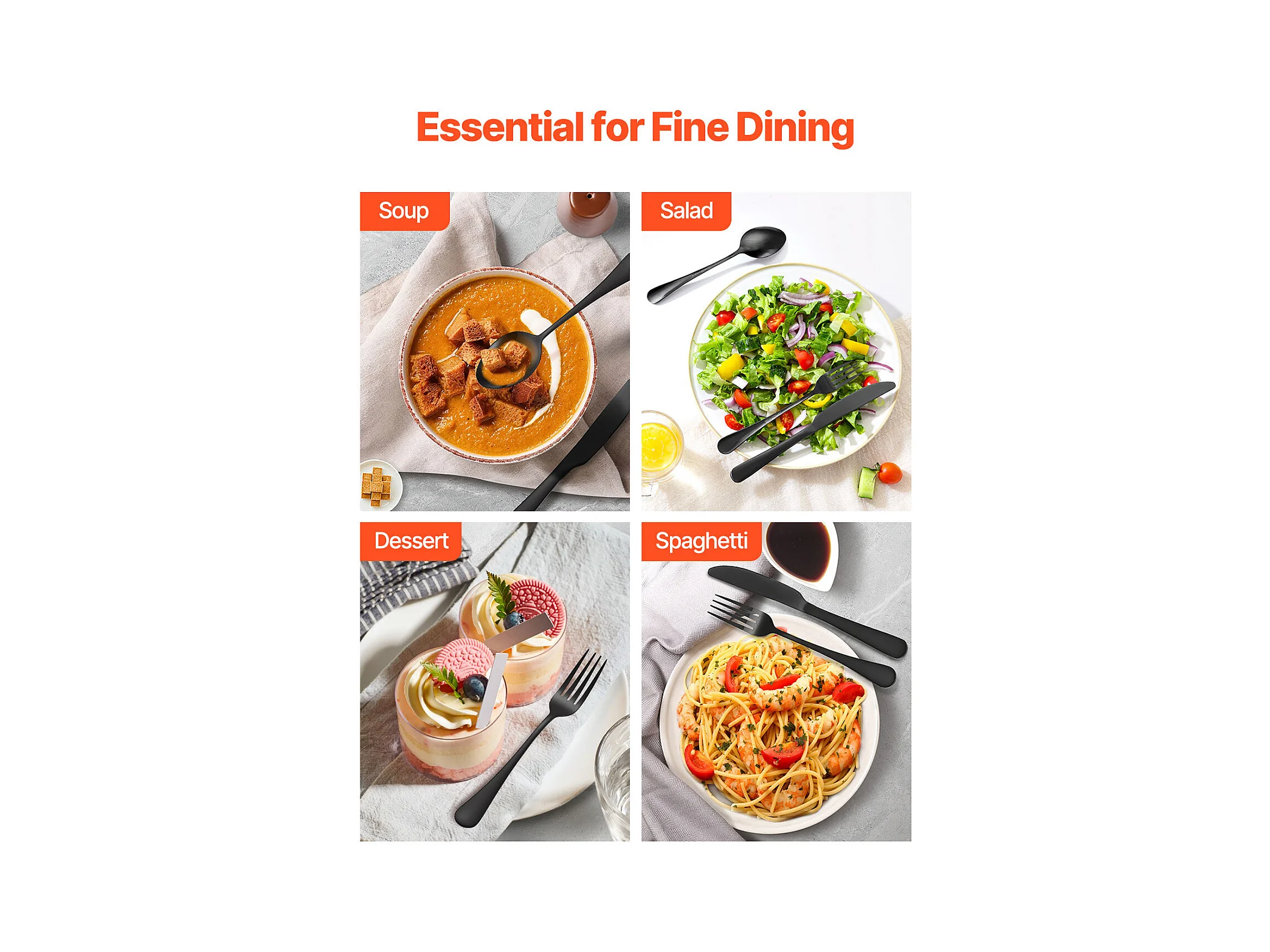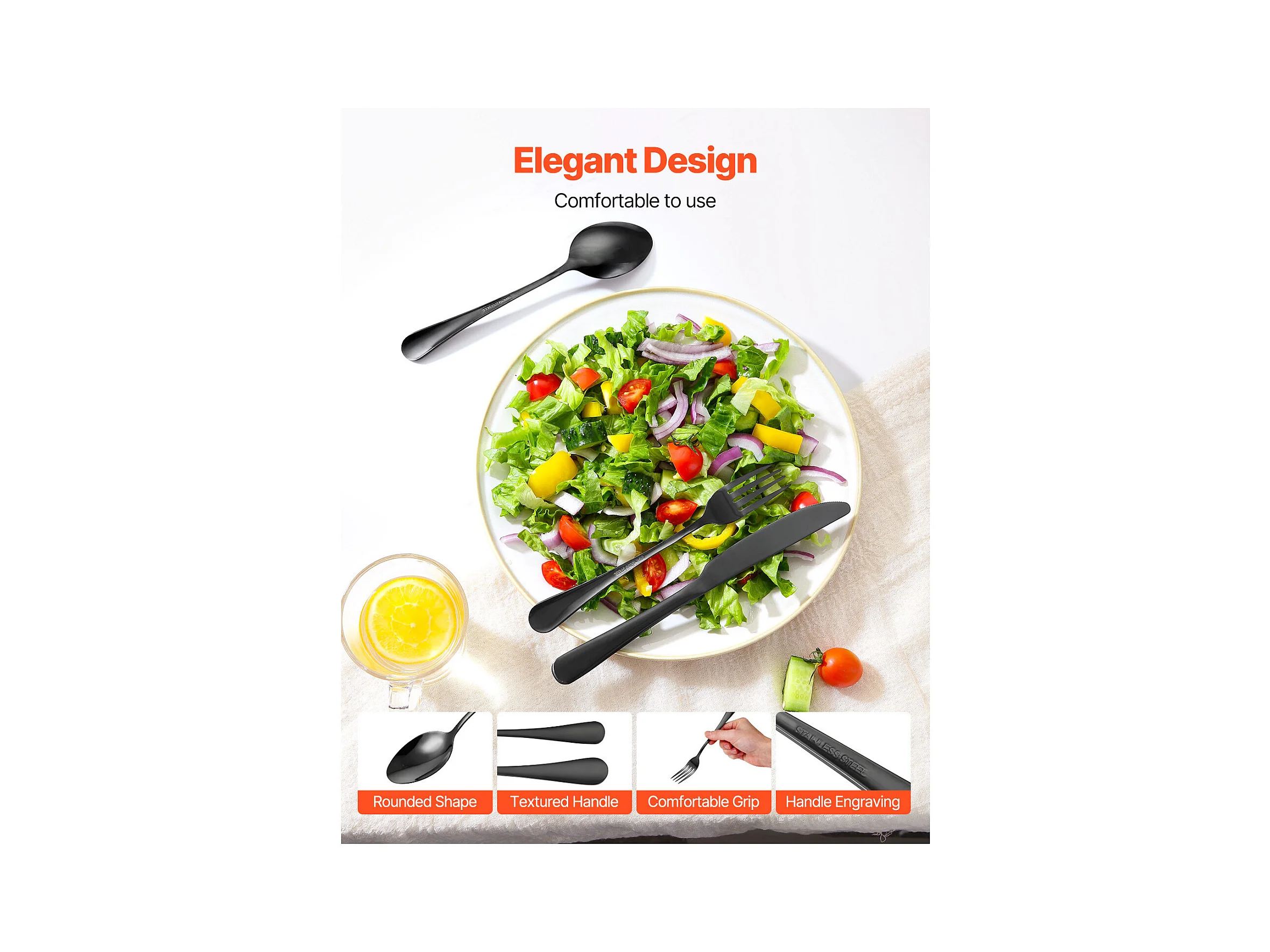 Set di Posate SucceBuy Set di Posate in Acciaio Inox da 30 Pezzi, Servizio per 6 Persone, Nero.