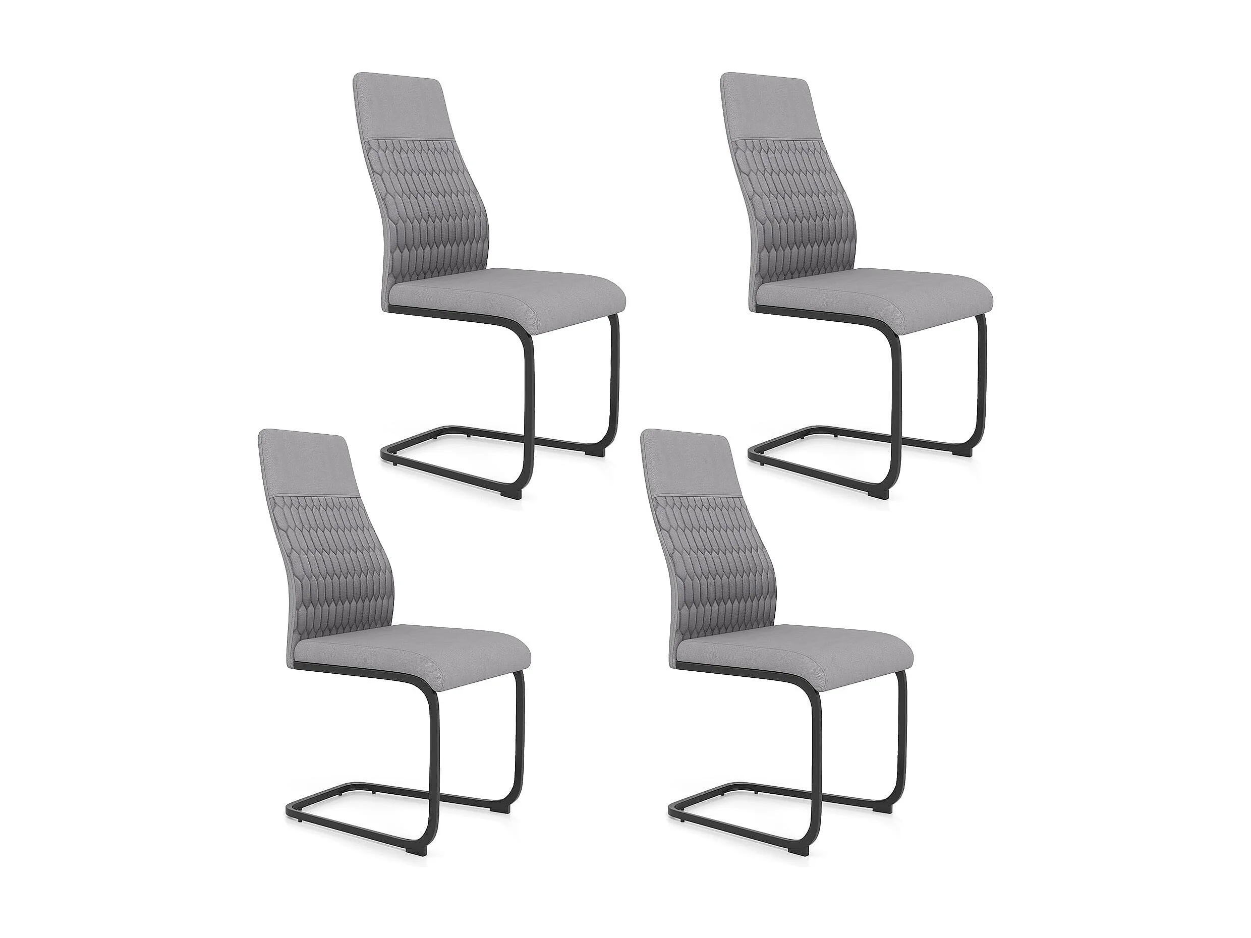 Set di sedie da pranzo da 4 con schienale alto inclinabile e cuscinetti antiscivolo, Sedia decorativa rivestita per interni Grigio