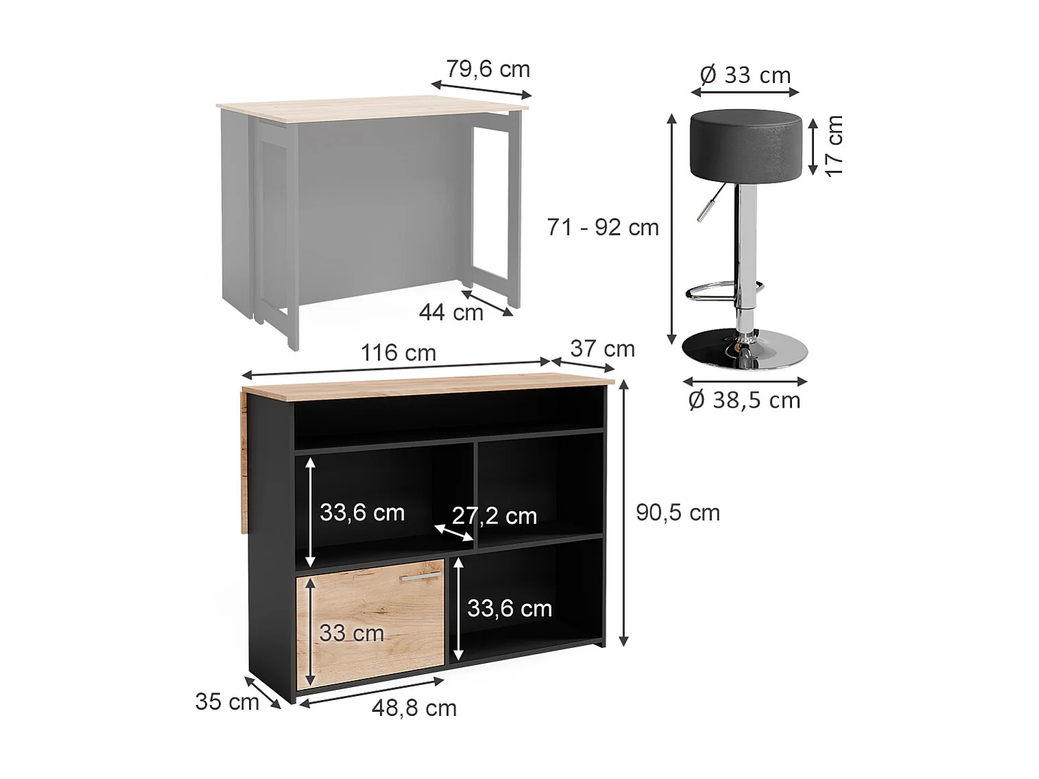 Set di tavoli da bar quercia dorata/antracite 116x37x90.5 dominic