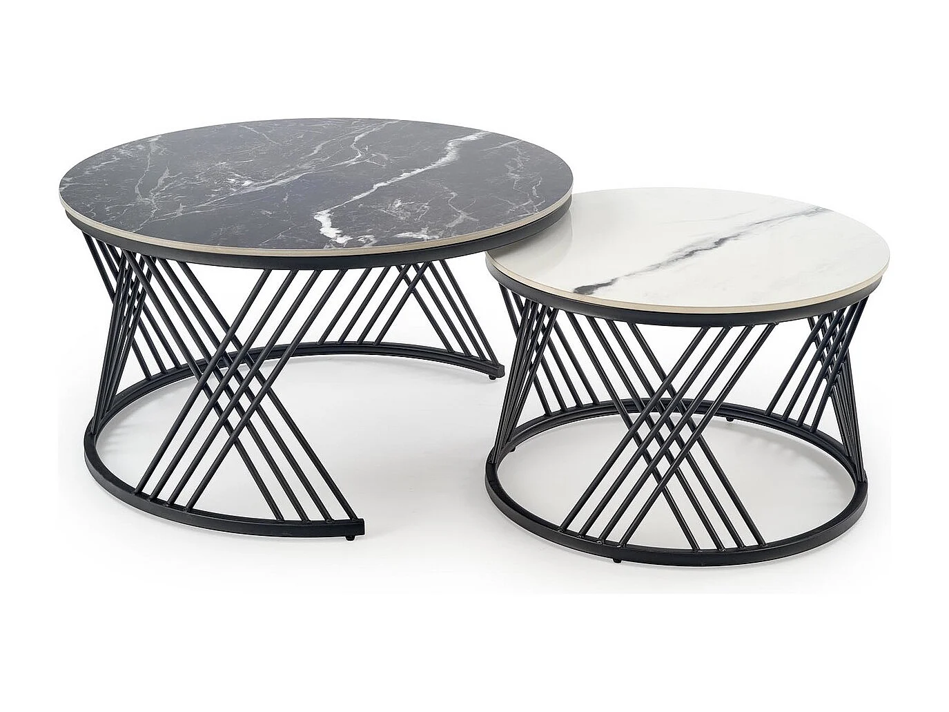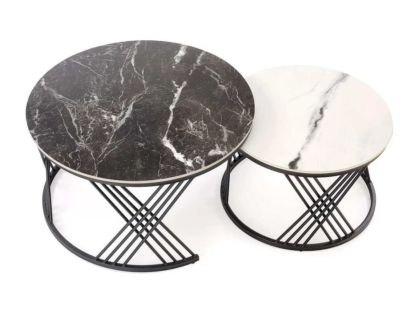 Set di tavolini da caffè Gilda/sinterizzato/metallo/design in marmo/bianco e nero