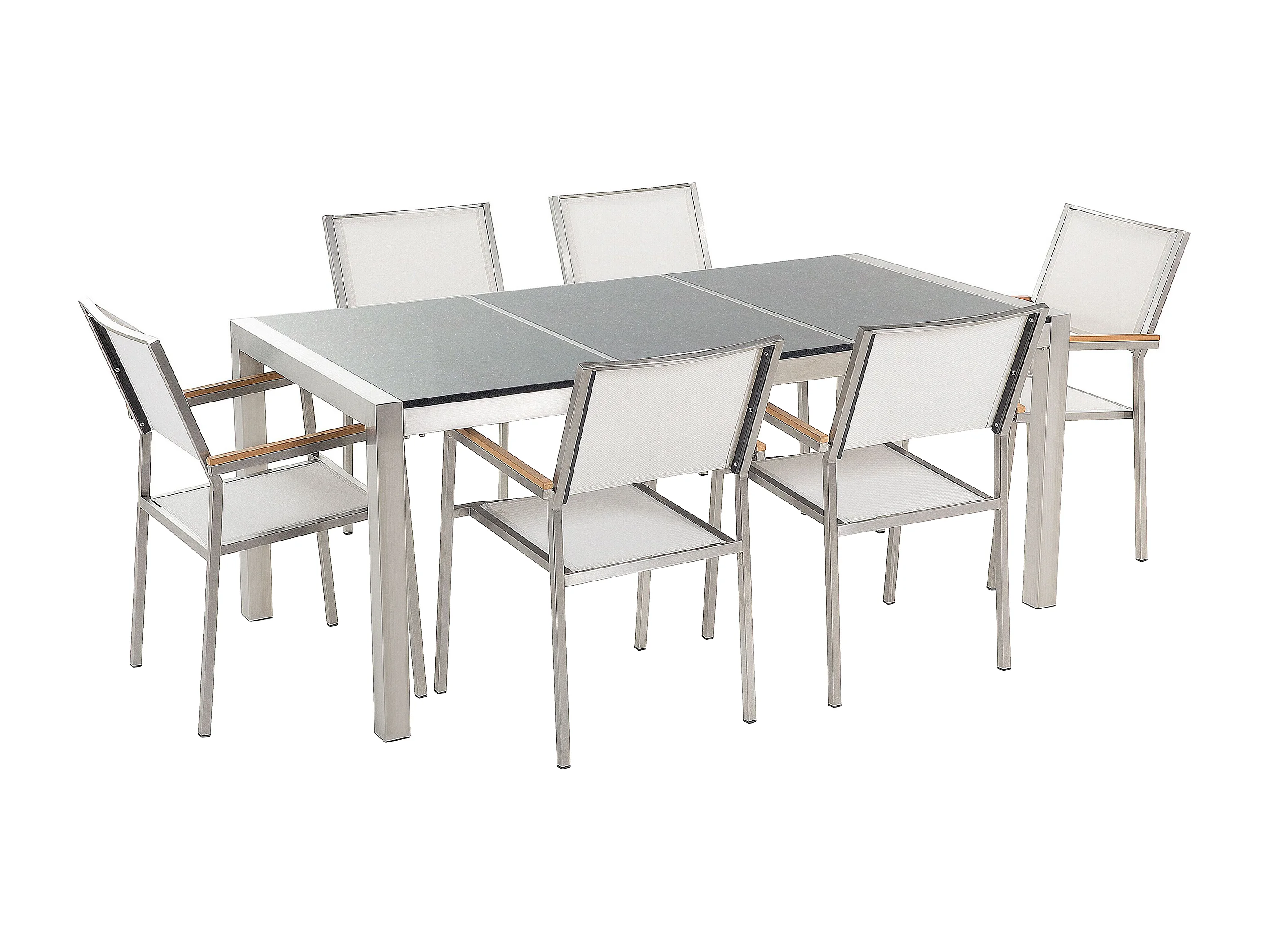 Set da pranzo da giardino 6 posti GROSSETO Piastra tripla Granito Lucido Grigio/ Bianco