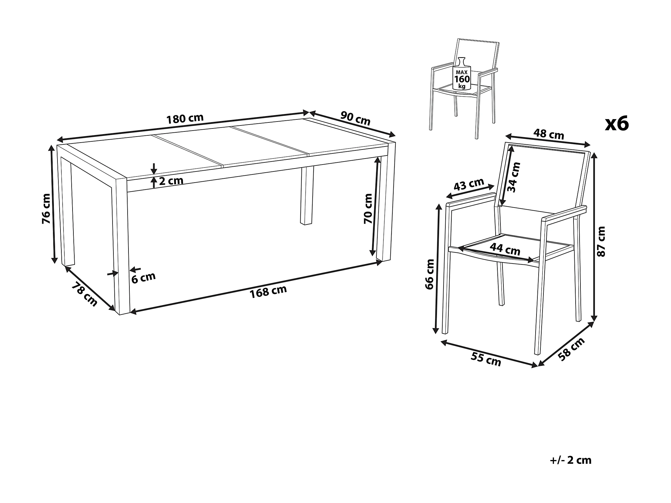 Set da pranzo da giardino 6 posti COMO Grigio