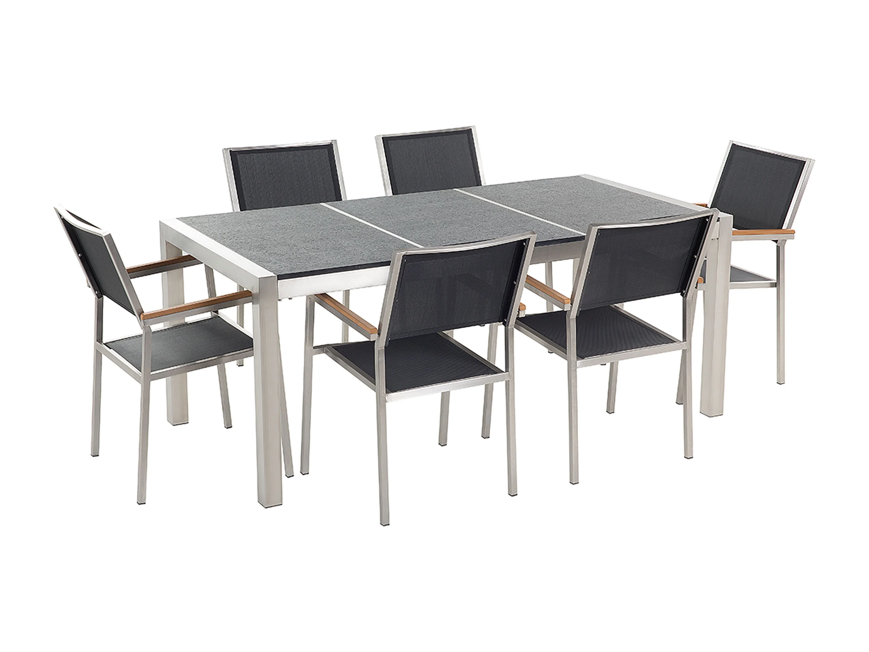 Set da pranzo da giardino 6 posti GROSSETO Piastra tripla Granito fiammato Nero