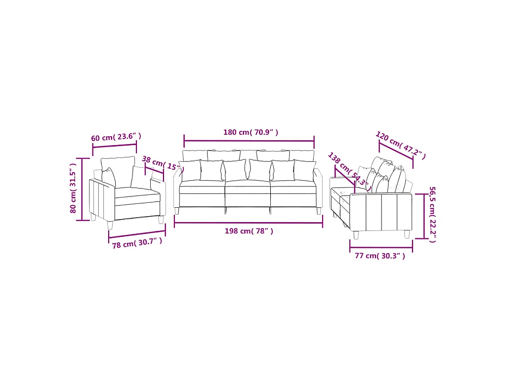 Set Divani 3 pz con Cuscini Grigio Chiaro in Tessuto