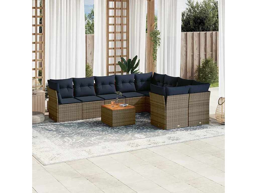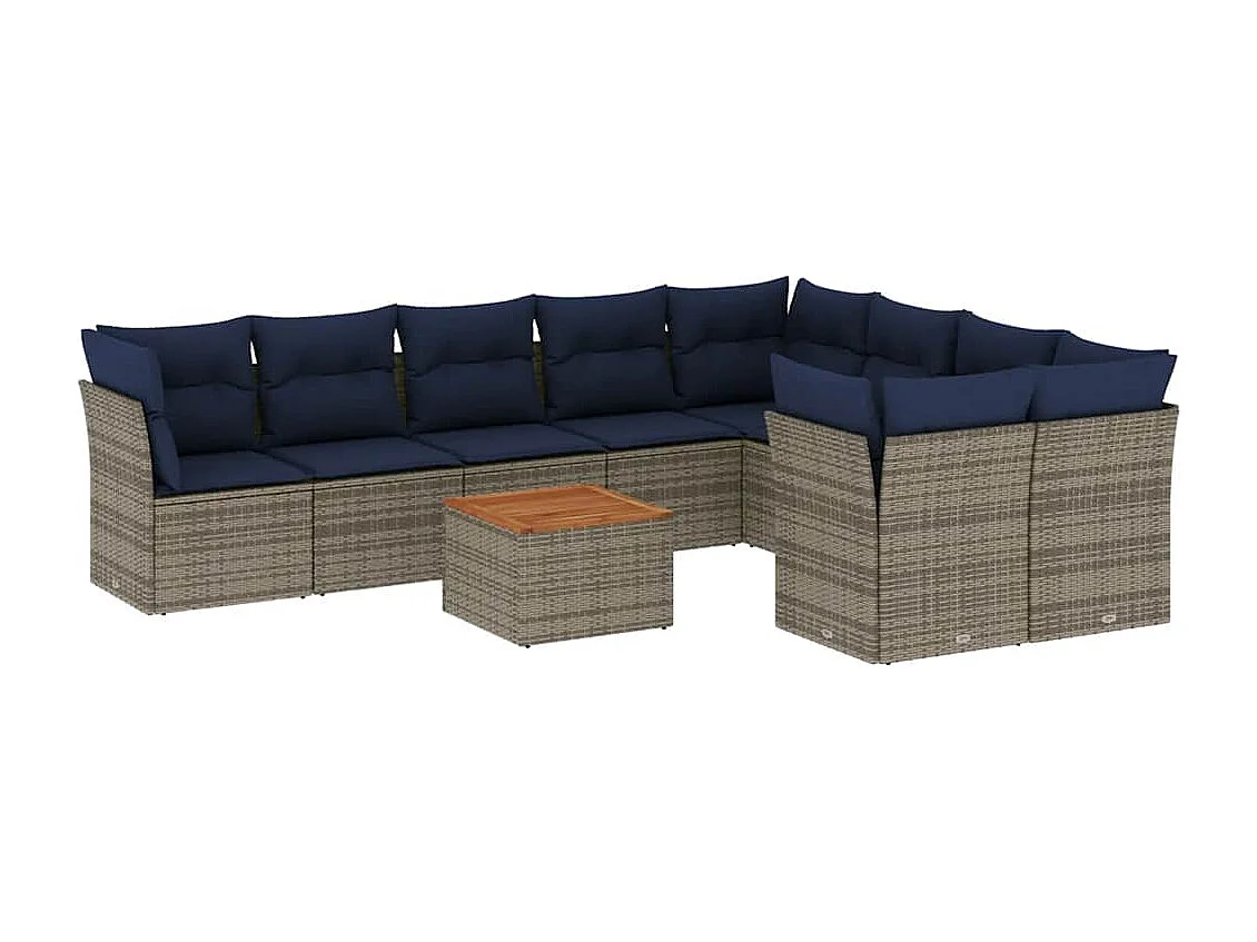 Set Divani da Giardino 10 pz con Cuscini Grigio in Polyrattan