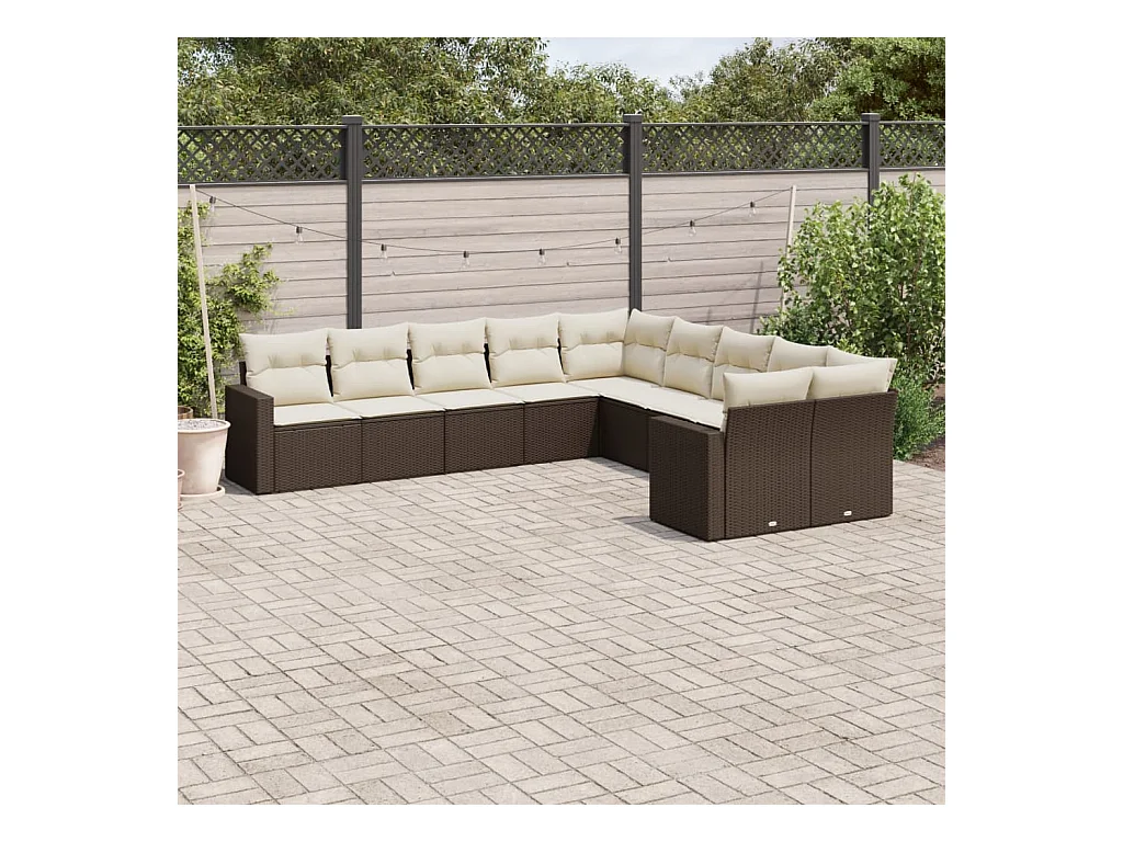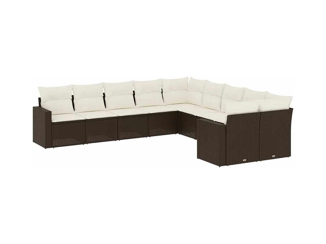 Mobili da giardino 10 pz con cuscini in resina intrecciata marrone