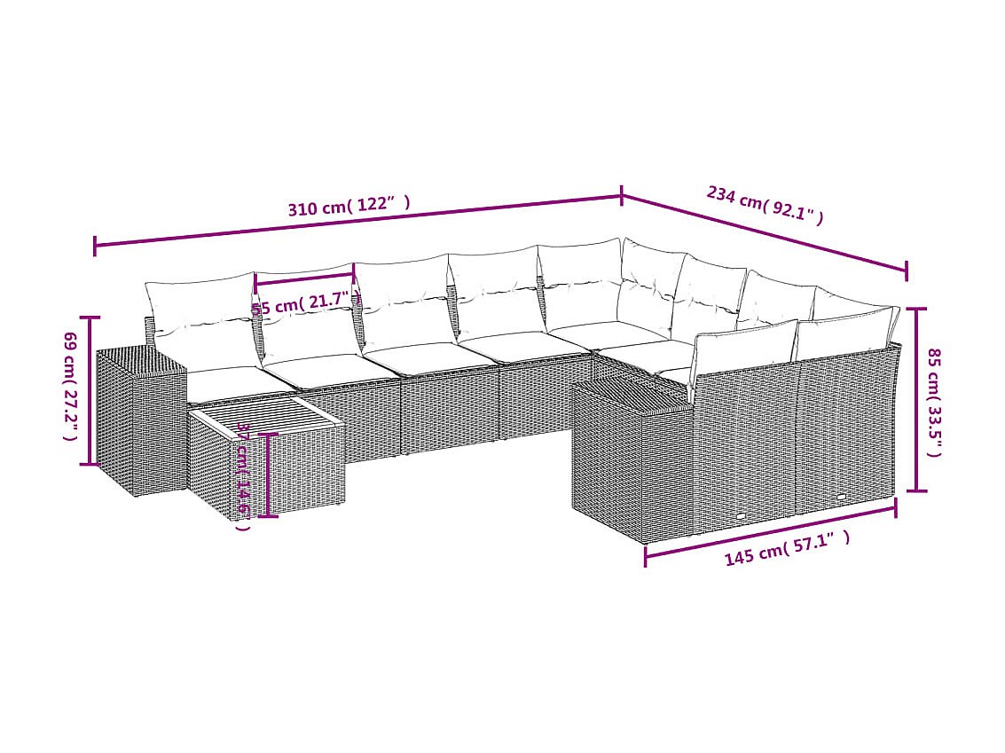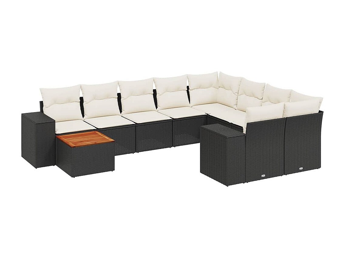 Set Divani da Giardino 10pz con Cuscini in Polyrattan Nero
