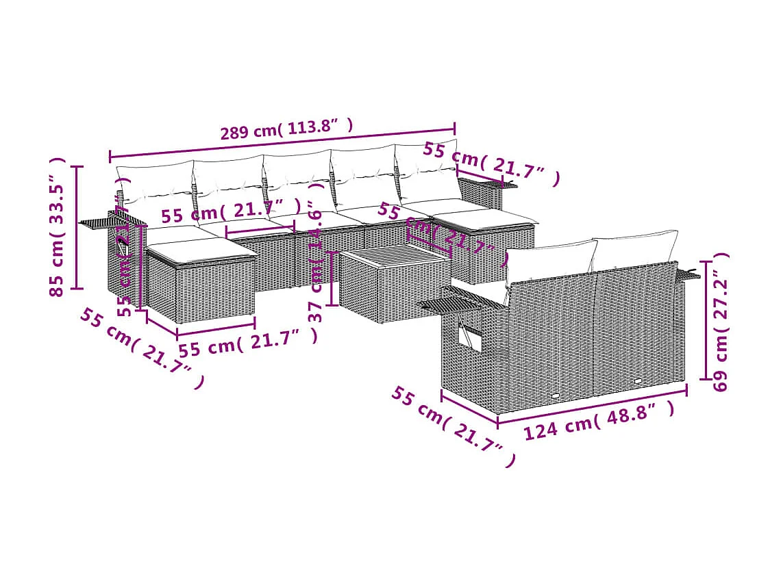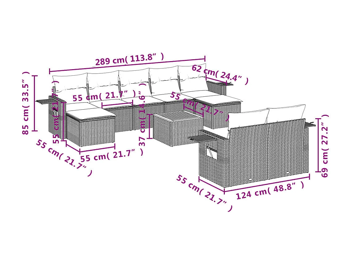 Mobili da giardino da 11 pezzi con cuscini in resina intrecciata nera