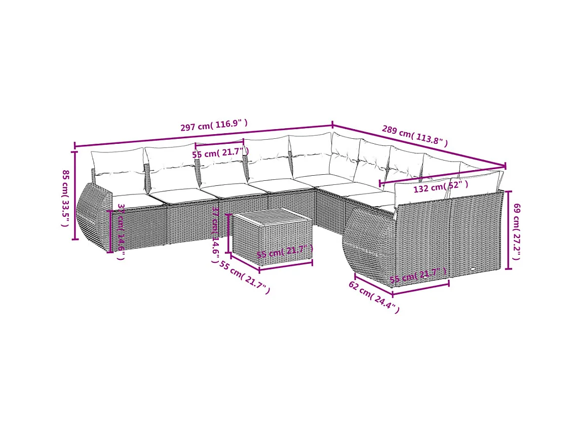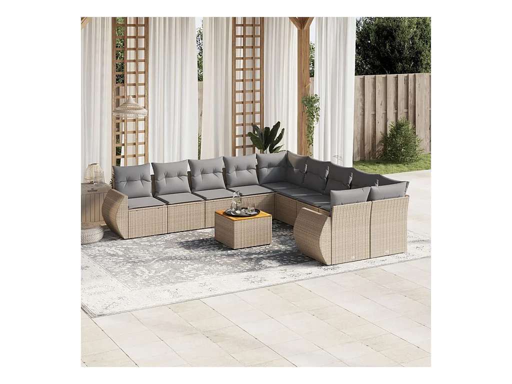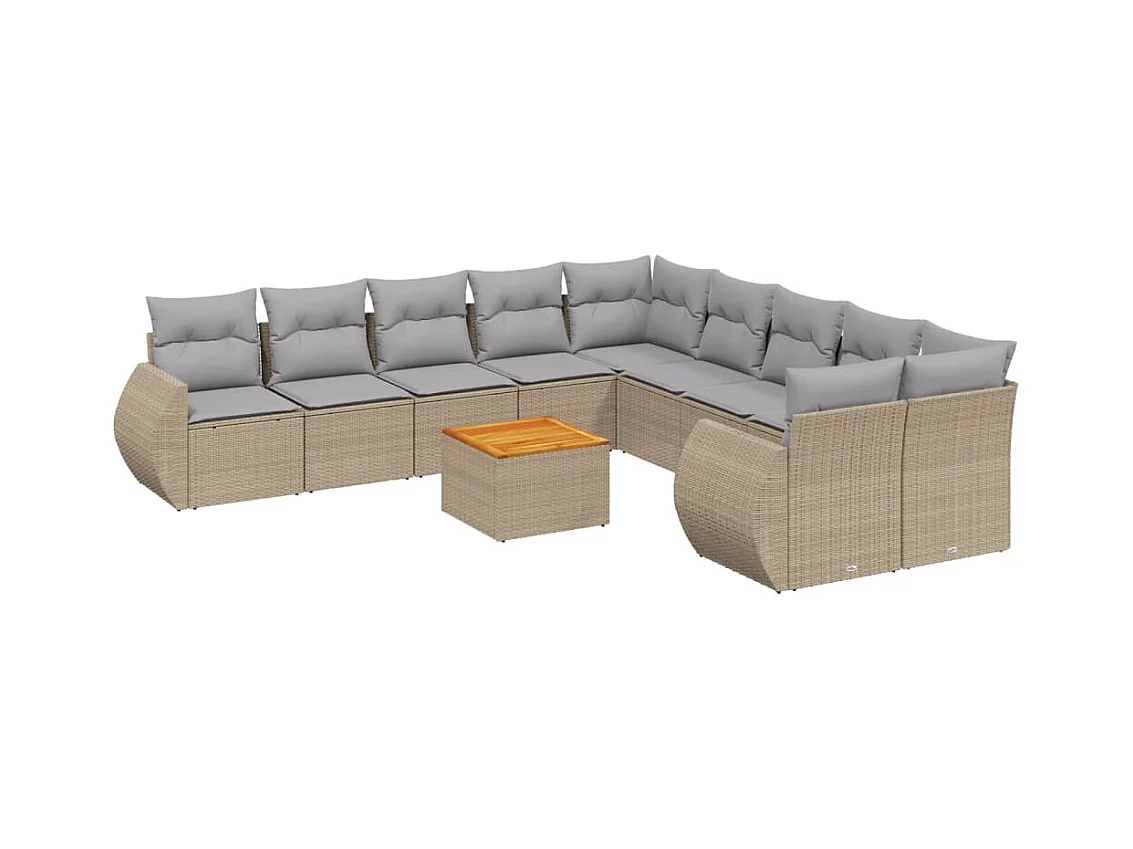Set Divani da Giardino 11 pz con Cuscini Beige in Polyrattan