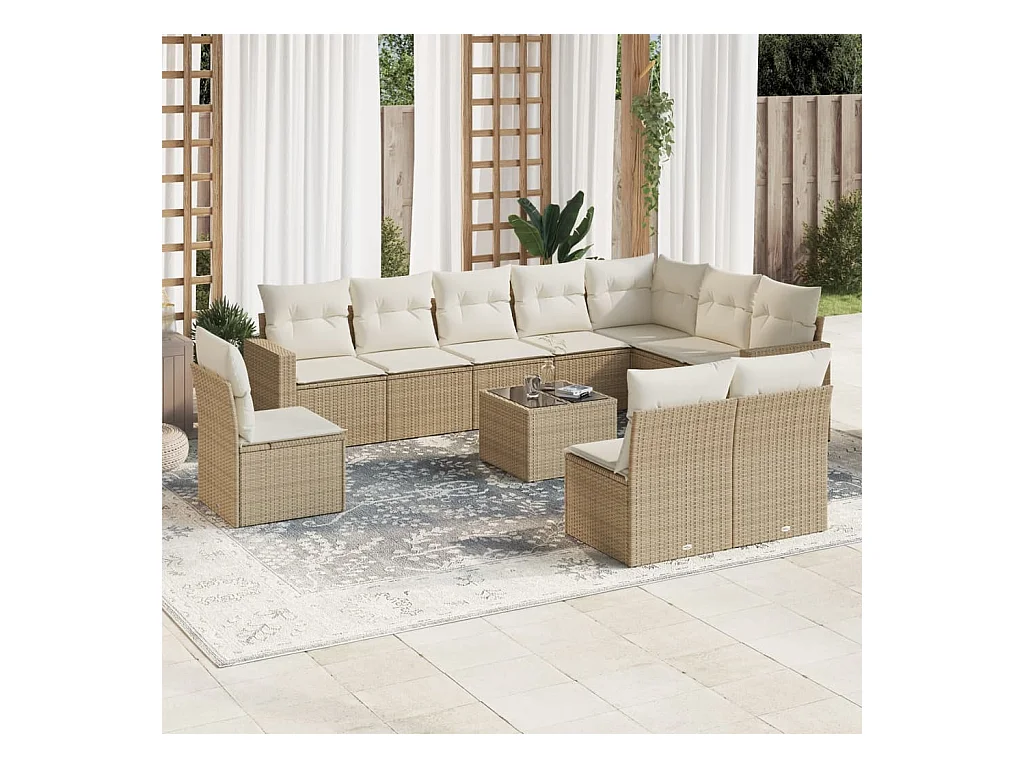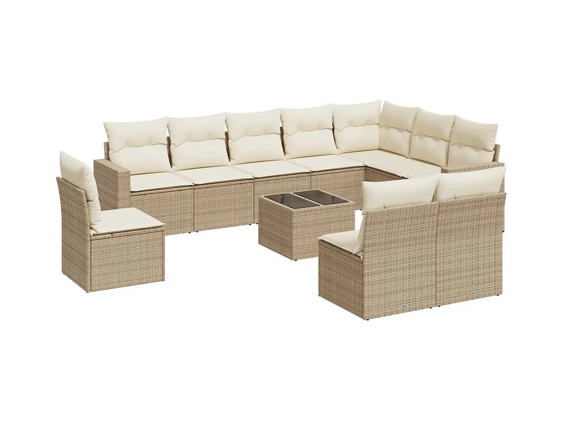 Mobili da giardino 11 pezzi con cuscini in resina intrecciata beige