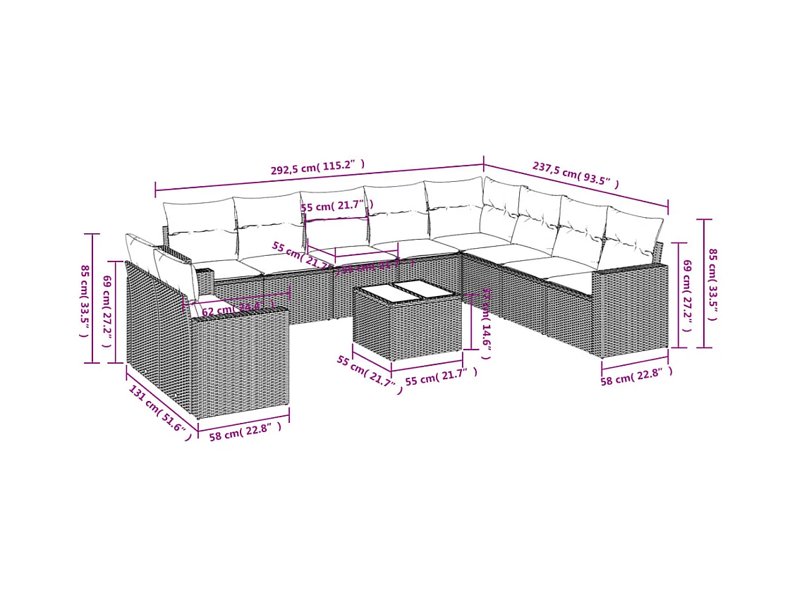 Mobili da giardino 11 pezzi con cuscini in resina intrecciata beige