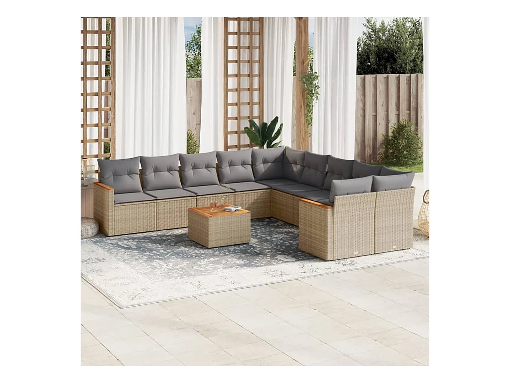Set Divani da Giardino 11 pz con Cuscini Beige in Polyrattan
