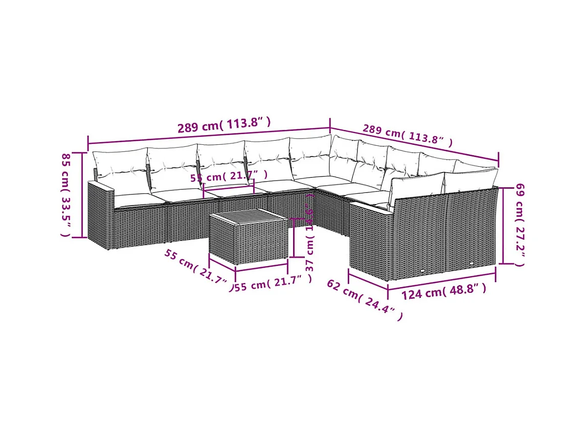 Set Divani da Giardino 11 pz con Cuscini in Polyrattan Grigio