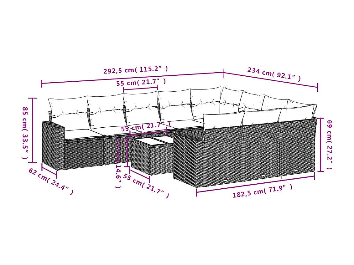 Set Divani da Giardino 11 pz con Cuscini in Polyrattan Grigio