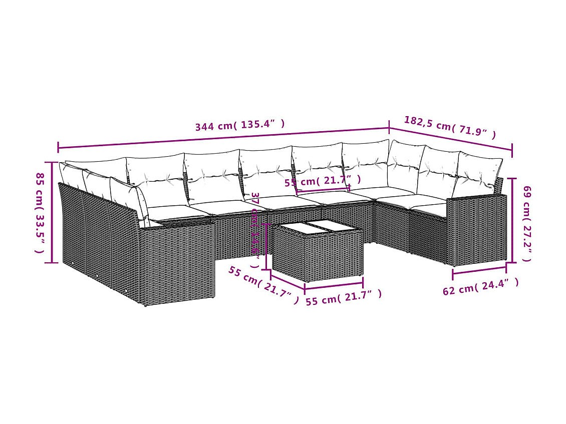 Set Divani da Giardino 11 pz con Cuscini in Polyrattan Grigio