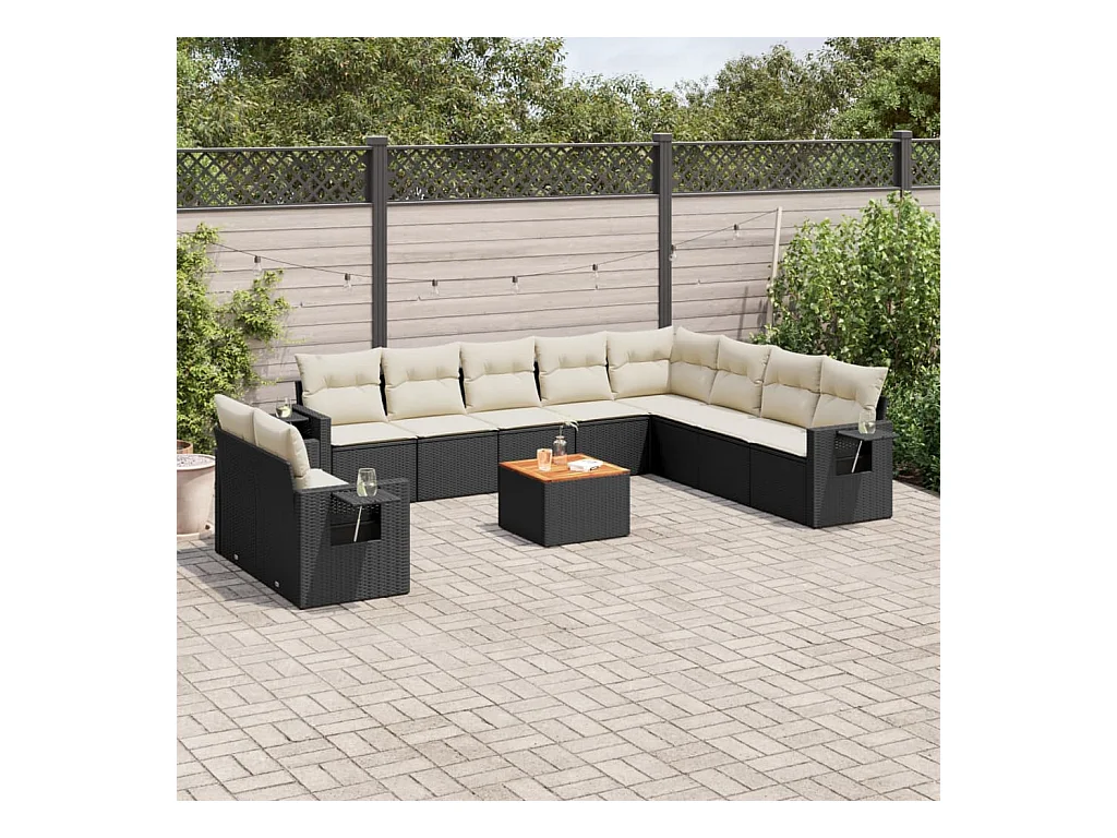 Mobili da giardino 10 pezzi con cuscini in resina intrecciata nera