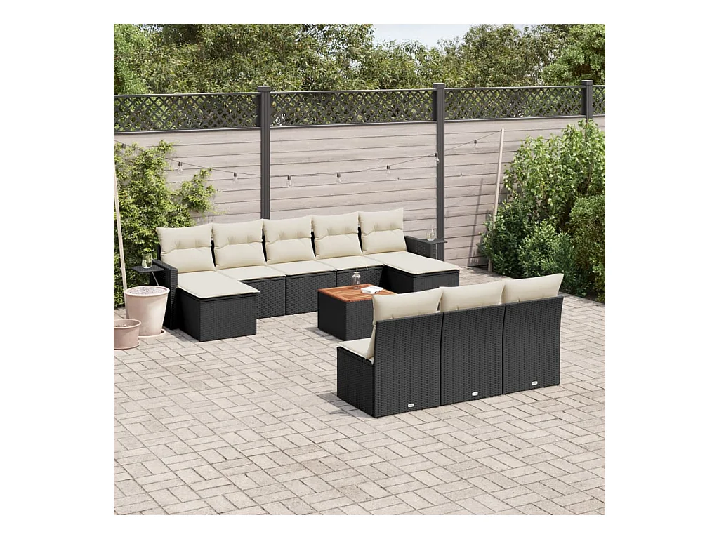 Mobili da giardino da 11 pezzi con cuscini in resina intrecciata nera