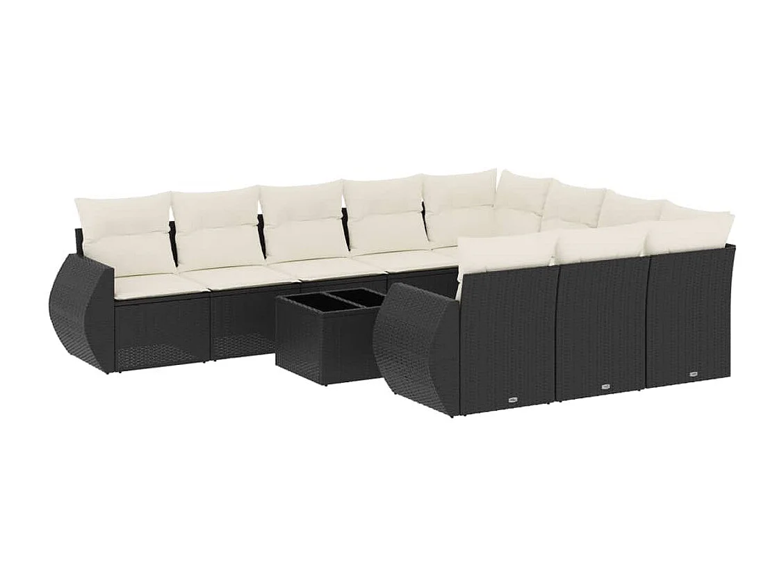 Mobili da giardino da 12 pezzi con cuscini in resina intrecciata nera
