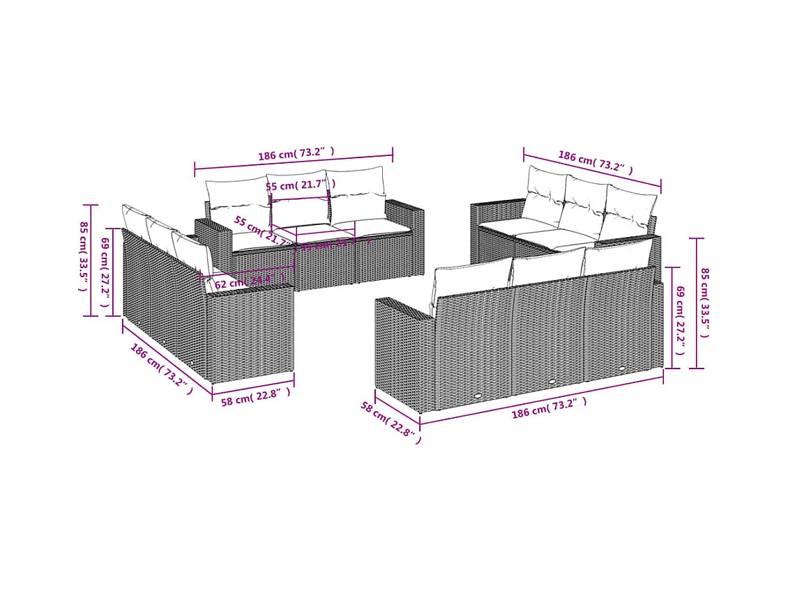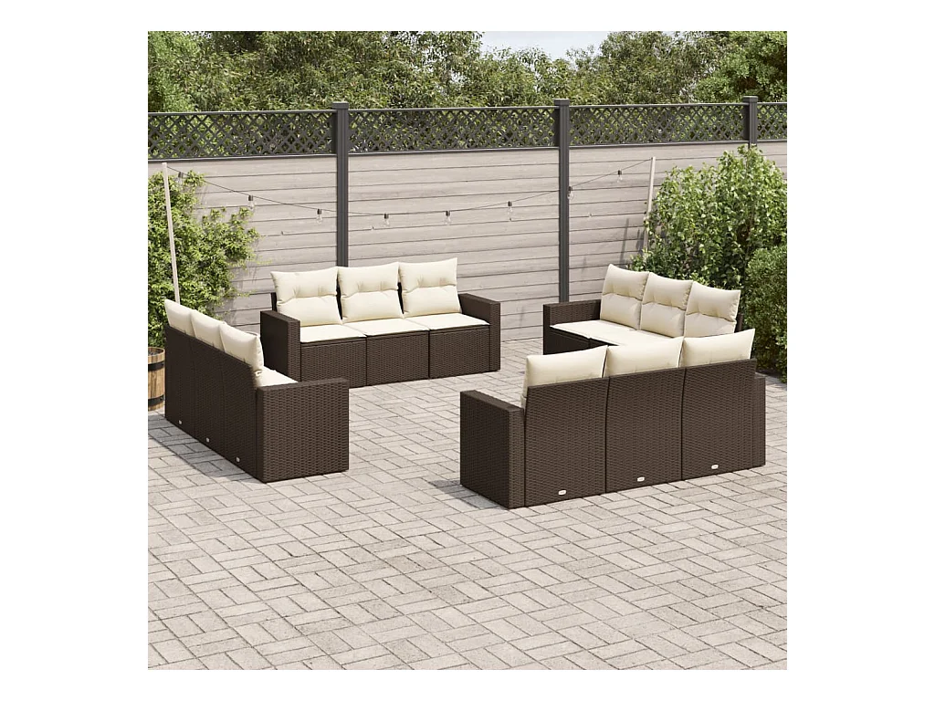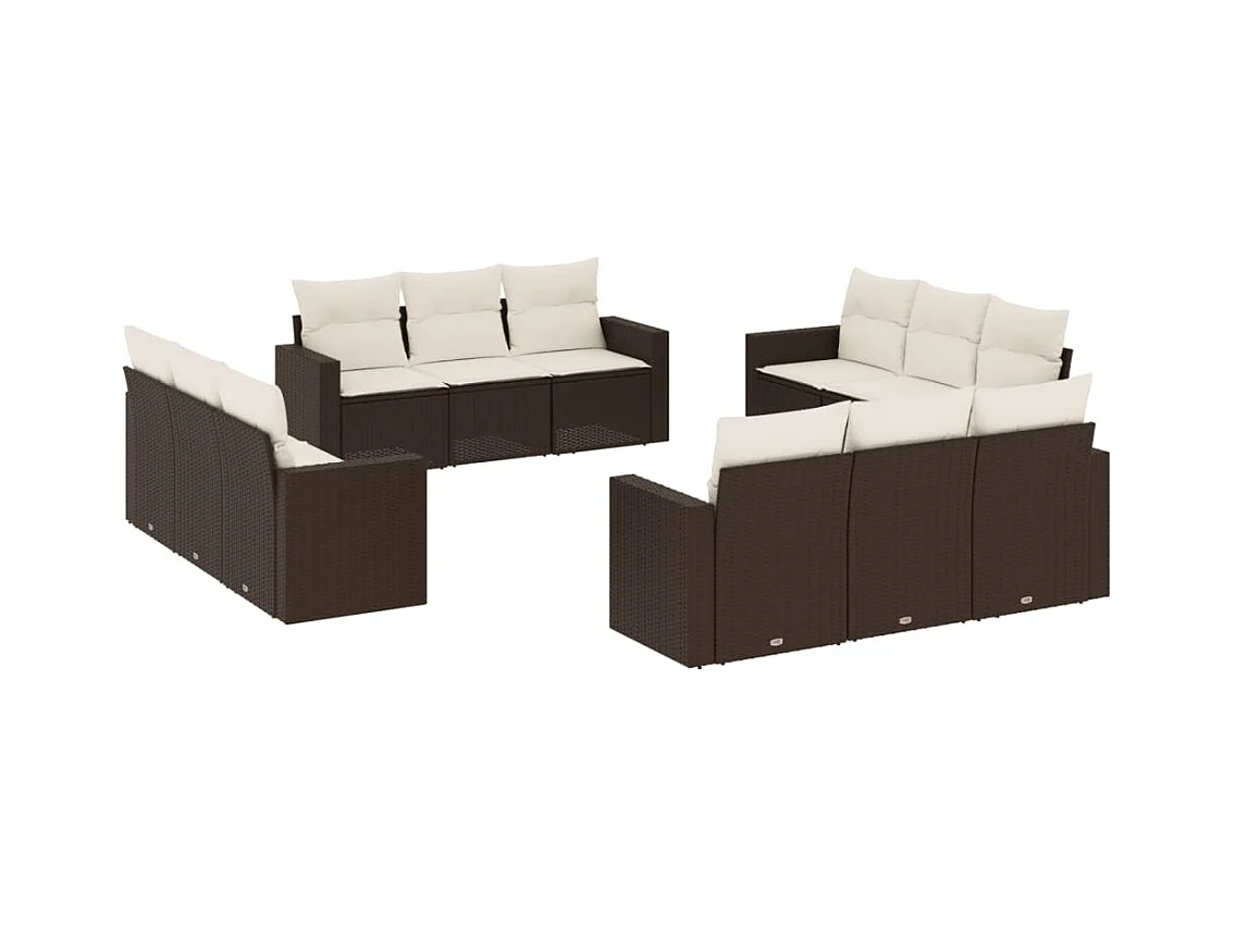 Mobile da giardino con cuscini 12 pz in resina intrecciata marrone