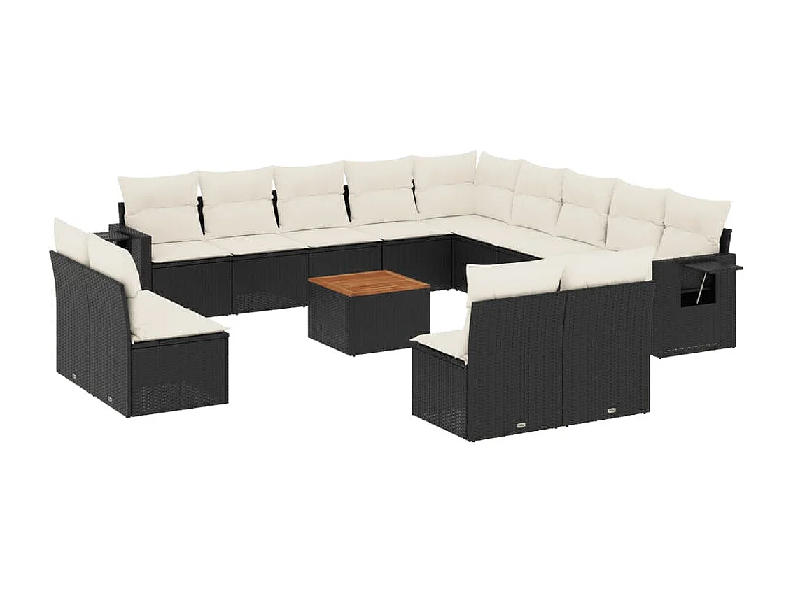 Mobili da giardino con cuscini 14 pezzi in resina intrecciata nera